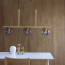 En pendel du aldri blir lei av! Det er en god beskrivelse av langbordpendelen Sophia fra danske Dyberg Larsen. Vakker og fin å se på. Lyskildene er omgitt av vakre, røykfargede glasskuler, noe som er veldig populært for tiden. E27-pærene får skinne elegant gjennom, noe som skaper en vakker lysspredning fra pendelen.