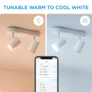 Pynt opp interiøret med en spotlight med justerbart lyshode. Gi omgivelsene full farge med mer enn 16 millioner farger, eller still inn lyset til å lyse med enten varmt eller kaldt hvitt lys. Du kan stille inn stemningen som du vil med den gratis Wiz-appen for iPhone. Spotlighten kan stilles inn til å lyse fra 2200K-6500K (varmt hvitt lys til nøytralt hvitt lys), avhengig av hvilken stemning du ønsker å skape.